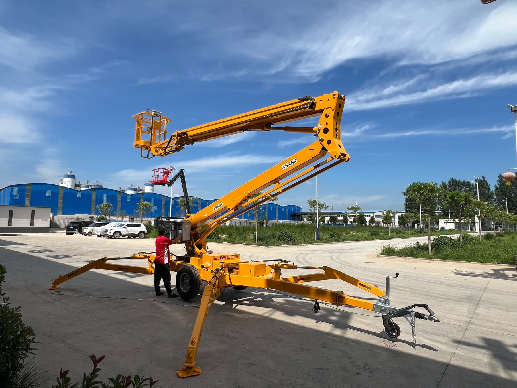 The Towable Trailer Boom Lift is a highly mobile and robust access solution, engineered for professionals requiring reliable performance across diverse job sites. It features a practical lifting height range of 10 to 20 meters, extending to a working height of 12 to 20 meters, and is built to support a payload of 200 kilograms.